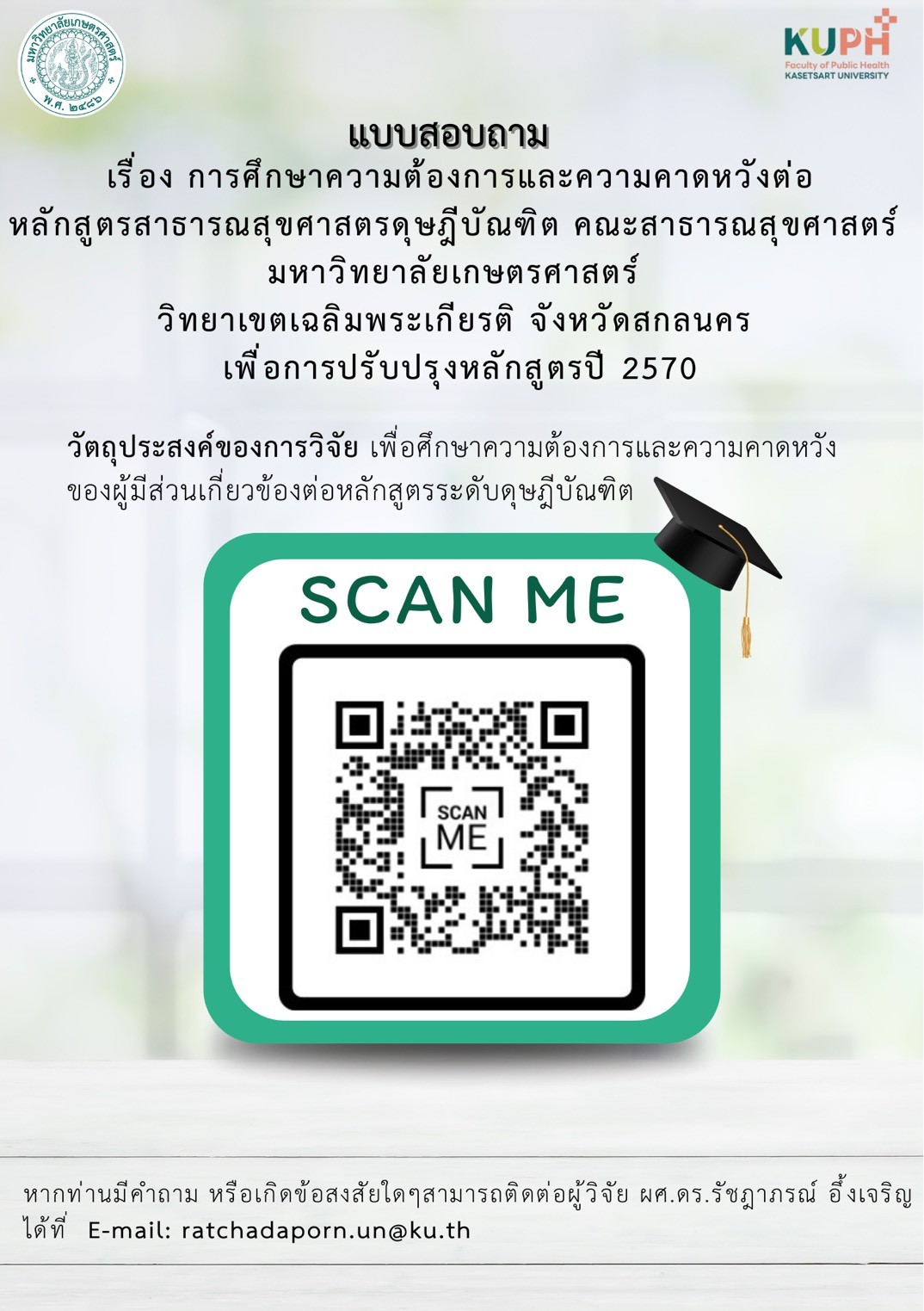 ขอความอนุเคราะห์ตอบแบบสอบถาม ความต้องการในการเข้าศึกษาต่อหลักสูตรสาธารณสุขศาสตรมหาบัณฑิต (Master of Public Health)